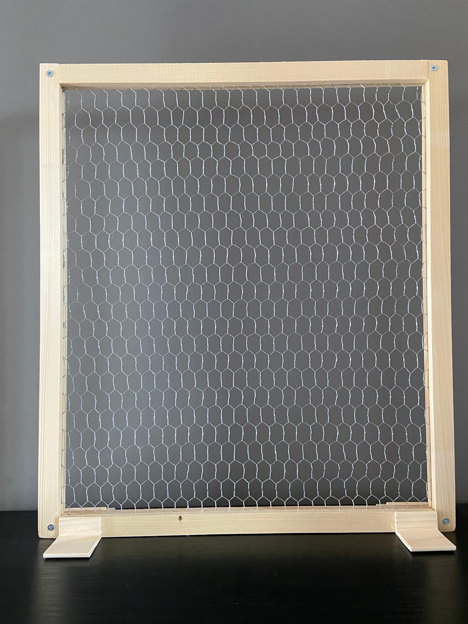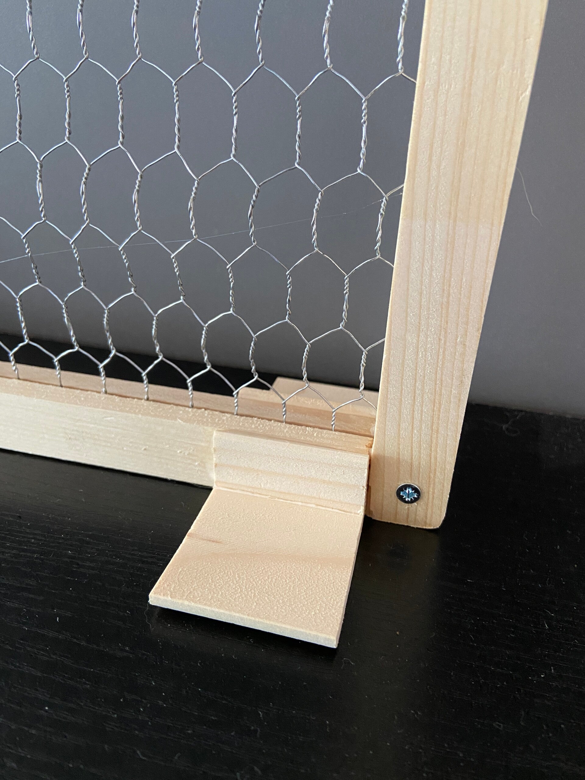 Auf Wunsch liefere ich Ihnen vier Holzwinkel als Stützen mit. Diese können problemlos mit Holzleim am Holzrahmen angebracht werden.